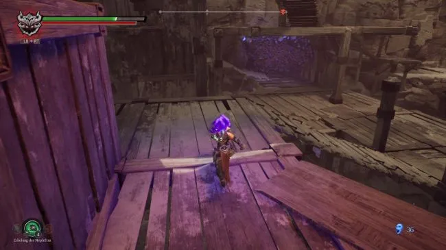 Вскоре после этого Вы доберетесь до переключателя, который Вы активируете своей способностью, после чего откроете короткий путь к темной яме и, соответственно, к буровой установке "Змеиная нора". Кроме того, слева от Вас открывается шлюз, благодаря которому яма наполняется водой. Благодаря способностям "Стазис" и "Пламя" вы можете перепрыгнуть через шлюз и пройти по тропинке за ним.