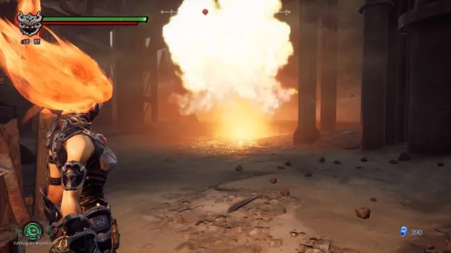 После головоломки с каменным блоком в воротах вы попадете в более просторную зону с машиной, за которой находится еще один фиолетовый переключатель. Если нажать его, то слева или южнее станка образуется большая лужа масла. Фьюри также делает замечание типа "Сейчас я с этим покончу", под которым она подразумевает едкий шторм. Она продолжает дуть по полю, где вы только что оставили лужу масла. Если теперь поджечь ее с помощью способности "Пламя", буря загорится и сгорит на ваших глазах.