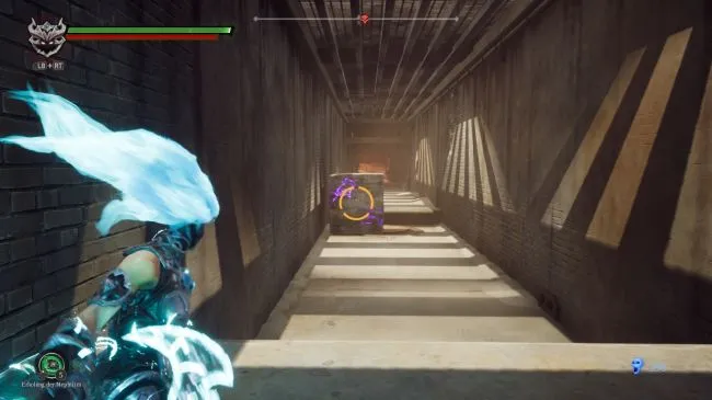 В середине прохода вы найдете напольный переключатель. Если встать на него, то ворота откроются. Теперь должно быть понятно, что нужно делать: Нужно переместить каменный куб на переключатель. Это не очень сложно, так как для этого достаточно одного-двух сильных ударов.