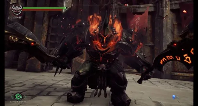 - Зорн сжимает оба меча вместе, после чего они становятся единым целым и светятся. Он бросает их в вас в виде огненного шара, поэтому вы быстро отпрыгиваете в сторону.