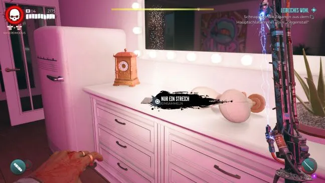 № 5 - За усы: Чтобы получить этот коллекционный предмет в Dead Island 2, взаимодействуйте с микрофоном в главной спальне Козьего дома. Для этого, однако, необходимо сначала выполнить побочный квест "Физическое здоровье", иначе вы не сможете найти необходимый главный ключ от козьего сарая.