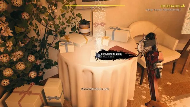 № 1 - Приглашение на свадьбу: лежит на небольшом столике в фойе гостиницы "Гальперин", прямо перед большой двустворчатой дверью, ведущей в бальный зал. Вы попадаете сюда автоматически во время выполнения основного задания "Вызовите кавалерию".