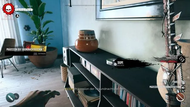 №1 - Катаклизм: первый прицел в Dead Island 2 находится на столе в гостиной на вилле Эммы, недалеко от верстака и торговца. Разумеется, воспользоваться этим устройством можно только после перезапуска серверов в ходе выполнения главного квеста.
