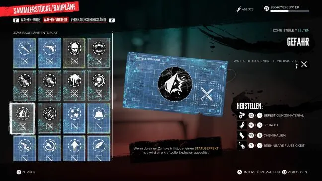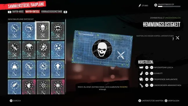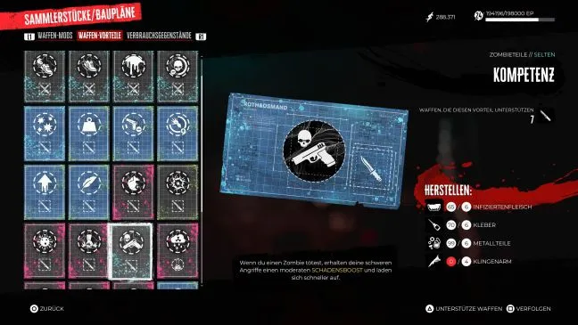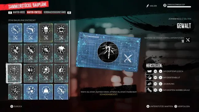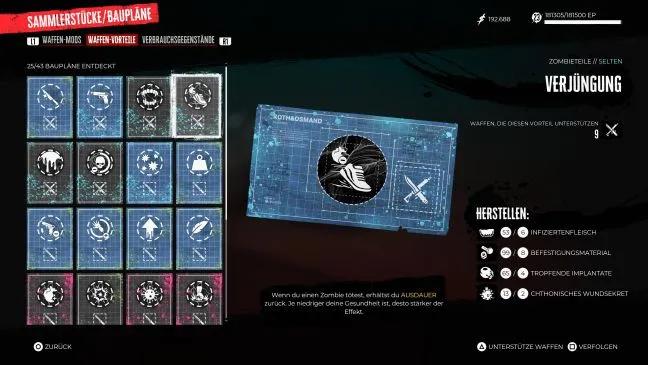 Насилие: Если вам приходится убивать много зомби в быстрой последовательности, вы можете быть рады регулярному увеличению наносимого урона. Вы автоматически получите этот чертеж после выполнения побочного задания "Донор органов", которое можно принять после завершения основного задания в безопасном доме Венеции Бич.