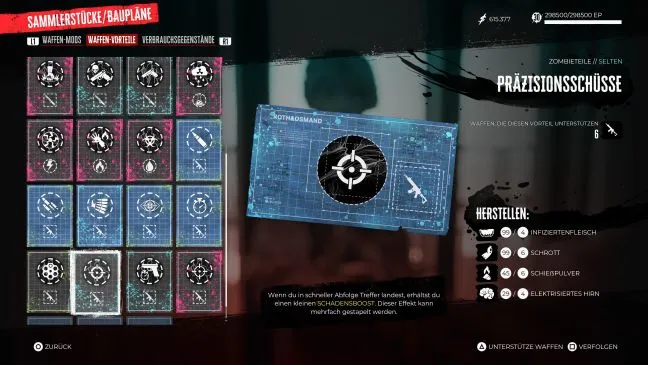 Точные выстрелы: Получается у Родригеса после выполнения побочного задания "Дневники мертвецов", которое возможно только в Конечной игре.
