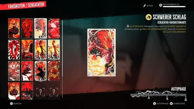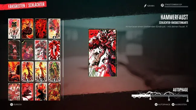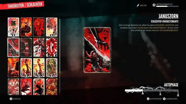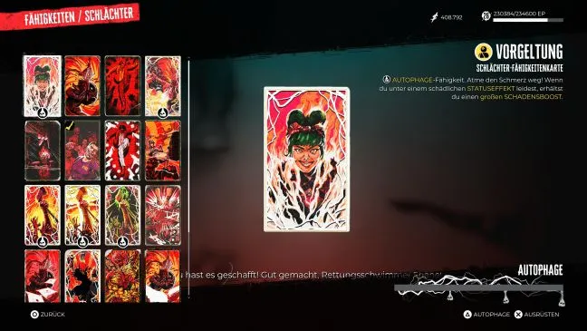 Воздаяние: этот навык аутофагии дается за выполнение квеста "Пропавший человек: Шейн". Воздаяние дает большую прибавку к урону при получении статусных эффектов.