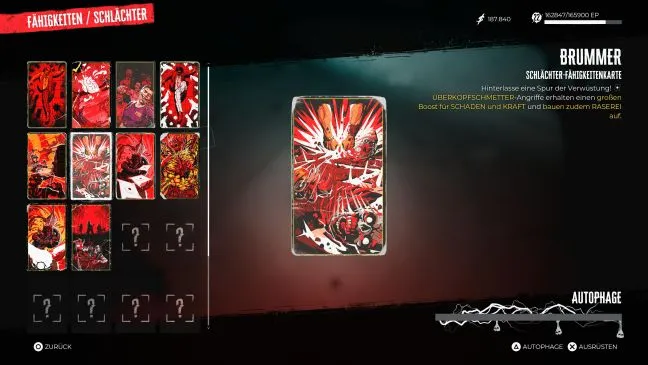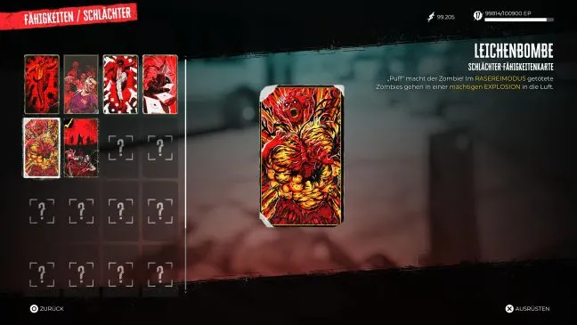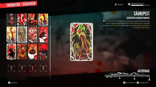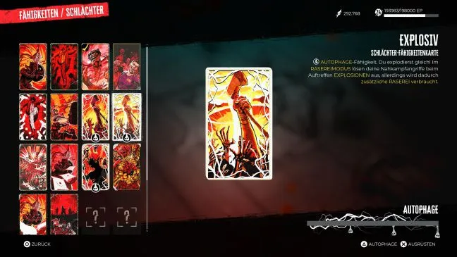 Взрывчатка: этот навык автофагии выпадает из бластера на пирсе. Соответствующий зомби находится среди врагов, атакующих колесо обозрения во время выполнения основного задания "Сверло для толстой доски". С этой картой ваши атаки ближнего боя вызывают взрывы во время бешенства, но для этого используется дополнительное бешенство.