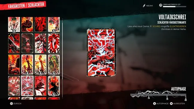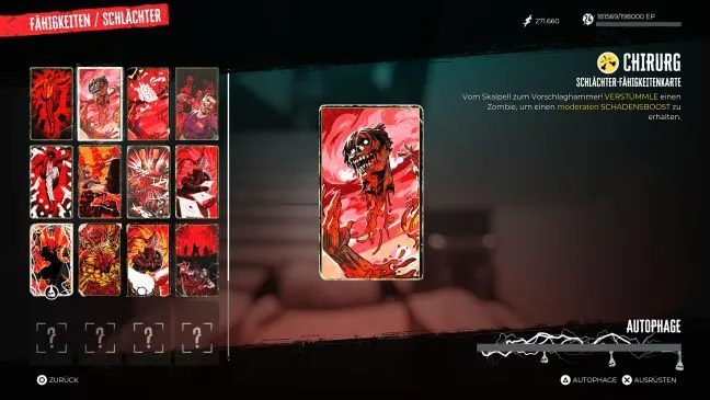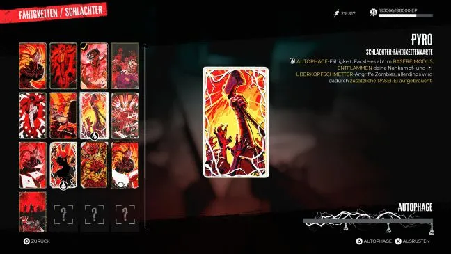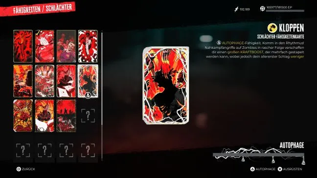 Клоппинг: Умение автофагов, благодаря которому атаки зомби в ближнем бою в быстрой последовательности дают большую прибавку к силе, которую можно складывать несколько раз, но начальный урон в бою значительно ниже. Получается за достижение 23-го уровня.