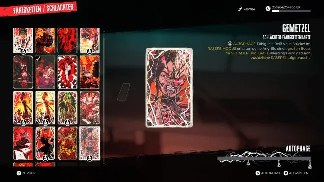 Carnage: Находится в серверной комнате магазина OSK на Океанском проспекте. Вы автоматически попадаете в эту локацию во время выполнения основного квеста "Поиск истины", и войти туда заранее невозможно. Эта способность автофагов заставляет атаки в режиме Frenzy получать большой прирост урона и силы, но при этом расходуется дополнительное количество Frenzy.