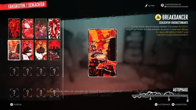 Breakdancer: Получается автоматически после достижения 20-го уровня. С помощью Breakdancer вы получаете умеренную прибавку к ловкости и скорости атаки от скользящих атак на зомби.