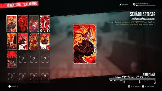 Skullsplitter: еще одна карта умений мясника, для получения которой не нужно прилагать особых усилий. Достаточно достичь 21-го уровня персонажа, и Skullsplitter станет вашим. Если ударить им зомби по голове, произойдет мощный взрыв.