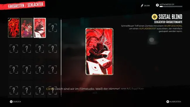 Socially Blind: Проще некуда, ведь на этой карте вам не нужно делать ничего, кроме как старательно убивать зомби. Продолжайте делать это, пока не достигнете 11-го уровня, и "Социальная слепота" автоматически станет вашей. С помощью этой карты умений мясника вы сможете вызывать многократное увеличение перезарядки при каждом попадании снаряда в зомби.