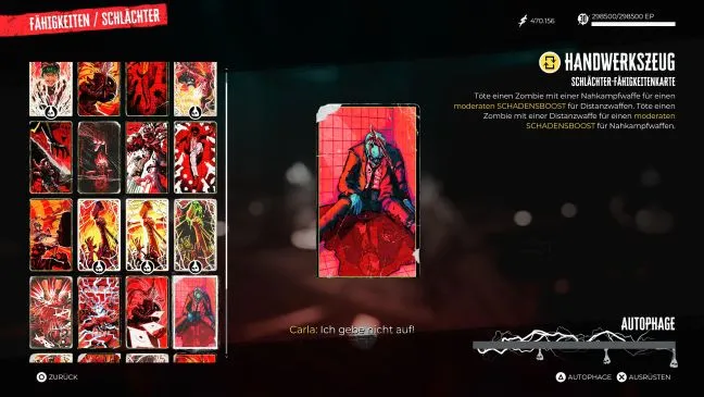 Инструменты ремесла: Вы получите эту карту "Мясник" только после достижения персонажем 30-го уровня. Эта карта позволяет увеличить урон, наносимый оружием дальнего боя при убийстве оружием ближнего боя и оружием ближнего боя при убийстве зомби оружием дальнего боя.