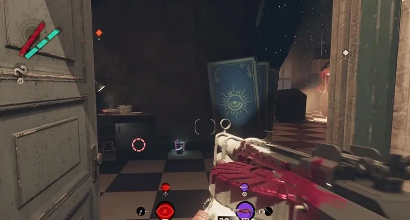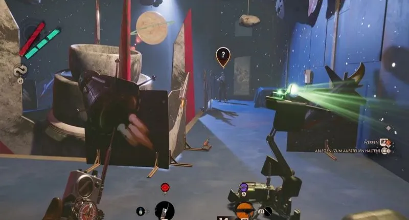 Поэтому держите наготове эфирный гаджет, которую вы теперь можете использовать с пользой, и сделайте себя невидимым, прежде чем открыть вход. Внутри здания теперь можно было держаться правее и подняться по первой лестнице на следующий этаж. Однако, поскольку там есть несколько врагов, а пейзаж открывает мало обзора, мы советуем вам совершить небольшое отвлечение.