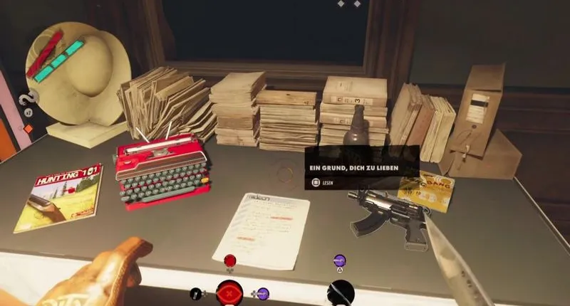 Сначала посмотрите на маленький столик, стоящий перед окном: Рядом с многочисленными папками и пишущей машинкой вы найдете записку «Повод для любви». Согласно записке, Джулианна в обеденное время доставит в библиотеку Апдаама сейф, код которого вы также возьмете из записки. В этом контексте вы узнаете, что Джулианна распорядилась доставить сейф в библиотеку для Алексиса в полдень.