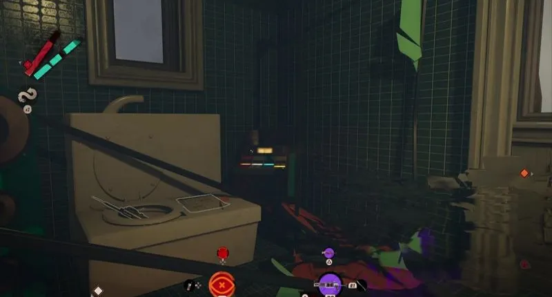 Слева от миникома дверь ведет в ванную комнату, где вам следует тщательно осмотреться. Среди прочего, вы наткнетесь на туалет, в чаше которого лежит магнитофон «Егор Нефильтрованный, часть 2», и где вы завладеете запиской «Совершенство». Рядом с туалетом находится очень интересная консоль с четырьмя светящимися цифрами, которые вы должны запомнить. Напротив туалета вы можете войти в другую небольшую комнату с многочисленными коричневыми стенными шкафами и прочитать записку «60 секунд: Алексис Дорси».