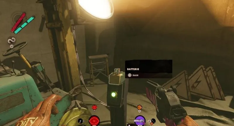 Другой выход находится непосредственно рядом с прихожей склада снабжения. Теперь вам нужно взять все оставшиеся батарейки и вставить их в оставшиеся розетки рядом с дверью в Стрелак Версо. Если вы следовали нашему решению, первая батарея уже должна быть на месте, а остальные находятся в цилиндрической камере: одна – в гнезде, другая – у вас в руках.