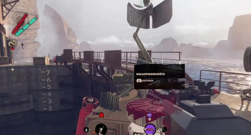 Но прежде чем кукла сможет двигаться, ей нужно электричество – точнее, аккумулятор. Для этого вспомните квест серии «Теория хаоса», где вы прошли по самому краю бухты Чарльза и таким образом достигли ангаров: при этом вы прошли мимо баллистической пушки, к которой теперь следует вернуться и просто вытащить батарейку, которая застряла в держателе в самом низу.