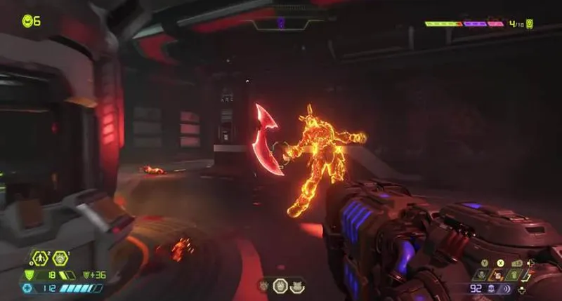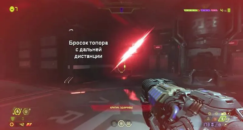 - Бросок топора (дальний бой). Если вы находитесь на большом расстоянии, Мародер начинает метать в Палача Рока свой обоюдоострый демонический топор, созданный из того же материала, что и щит. Топор наносит разрушительный ущерб здоровью героя.