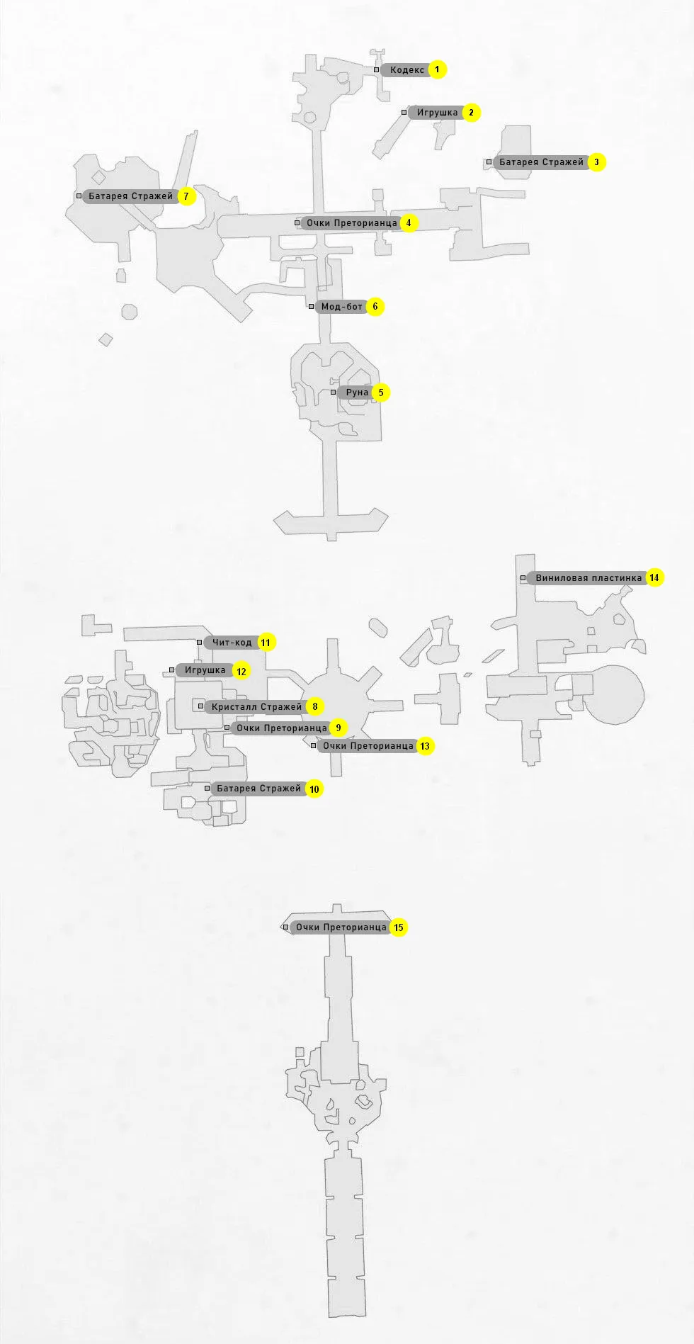 Подробное описание обозначенных на карте предметов, читайте в списке ниже.