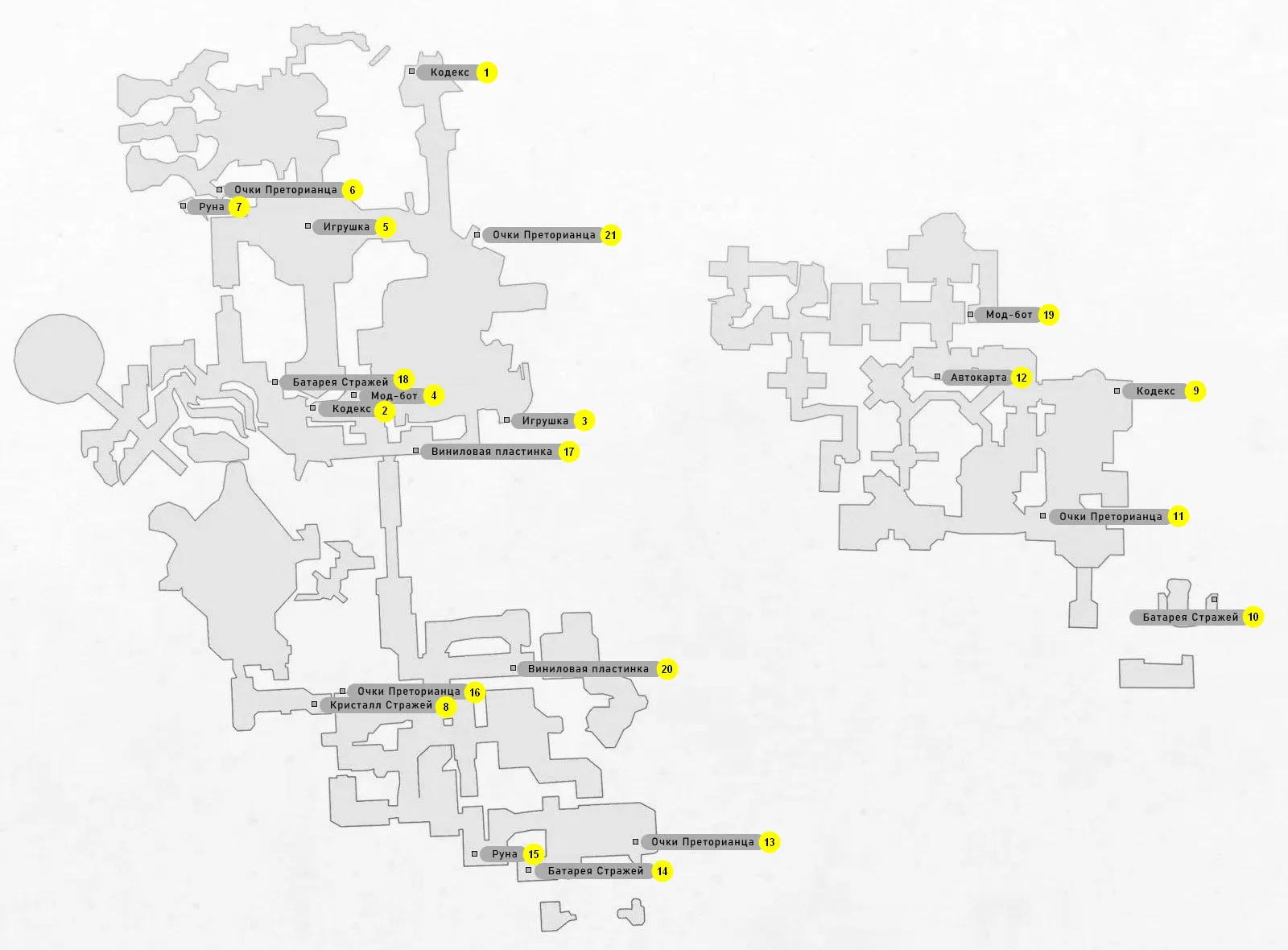 Подробное описание обозначенных на карте предметов, найдете в списке ниже, под своими номерами, нанесенными на карту: