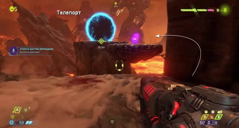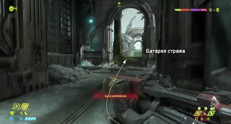 По основному мосту идем до портального перехода, где подбираем Плазменное ружье, способное пробить энергетические щиты противников.