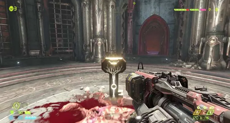 Противники – Ревенанты и Рыцари ада в большом количестве. На одном из островков можно найти усиление «красный череп», способный усиливать урон. Одолев всех врагов, получаем способность к ускоренному перемещению, телепорт скрывает за собой окончание уровня.