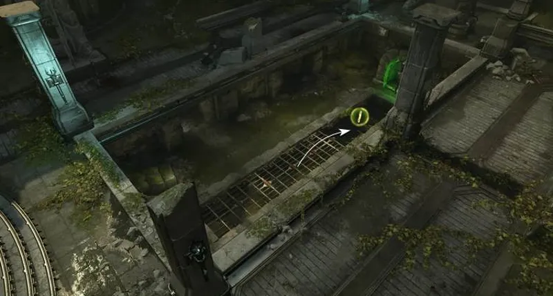 Центральный балкон хранит секрет. Если сдвинуть статую и нажать кнопку, то появятся 2 бассейна, наполненных кислотой. В бассейне нужно пробить зеленую трещину, чтобы опустился уровень воды. Под водой откроется тоннель, если выстрелить в узкую трубку. На поверхности важно забрать Очки Преторианца и второй кодекс, что находится на следующем дворе.