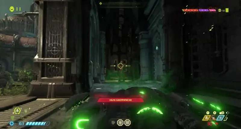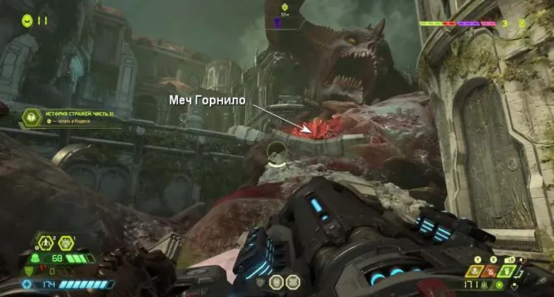 Через яму с кислотой попадают в коридоры. После нажатия кнопок и уничтожения ящика ждет новый седьмой кодекс, а у входа – второй Жетон Мастера. На балконе будет Горнило.