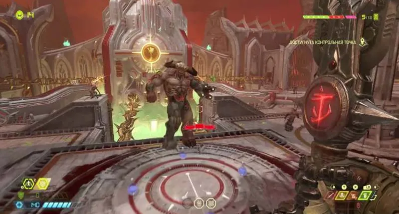 В центре города стоит башня, до неё добираемся по мостику. Двери закрыты, спрыгиваем на правую колонну, потом на следующую, и через конденсатор. На всём промежутке пути вам мешают Какодемоны.