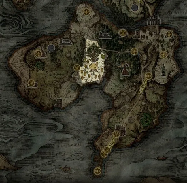 Если встать перед церковью пилигримов и посмотреть на юг, то можно увидеть большое дерево, растущее из земли. Чтобы добраться до него, сначала спуститесь с холма, на котором стоит церковь, а затем присмотритесь к фрагменту стены на широкой равнине. Сразу за ним вы увидите зазубренный камень и еще один склон, по которому можно подняться к дереву. Держитесь как можно левее и поднимайтесь по одной ступеньке.