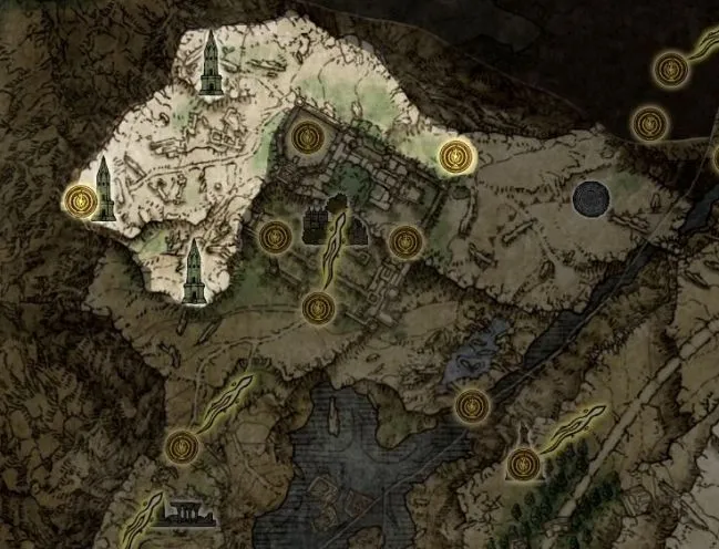 - Идите на восток от башни Реннаса, пока не встретите волков и нежить. Рядом с ними вы также обнаружите скарабея с Ледяным оружием и, наконец, Точку Милосердия за Домом Карии.