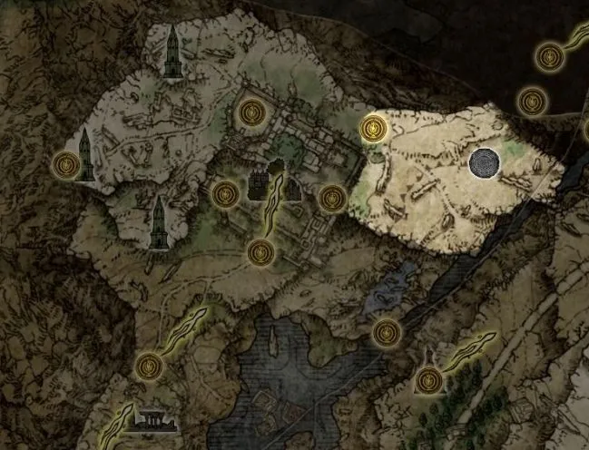 В Каэлиде также есть Низкоземное дерево, но добраться до него довольно сложно. Прежде всего, вам нужно начать свой путь от церкви Grace Point Smouldering Church и, выйдя из здания, идти на северо-восток. Вы должны наткнуться на широкую скалу, которую нужно обойти слева. Это приведет вас к северному краю области, и вдалеке вы увидите крепость.