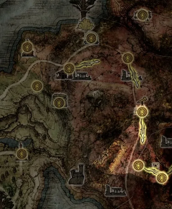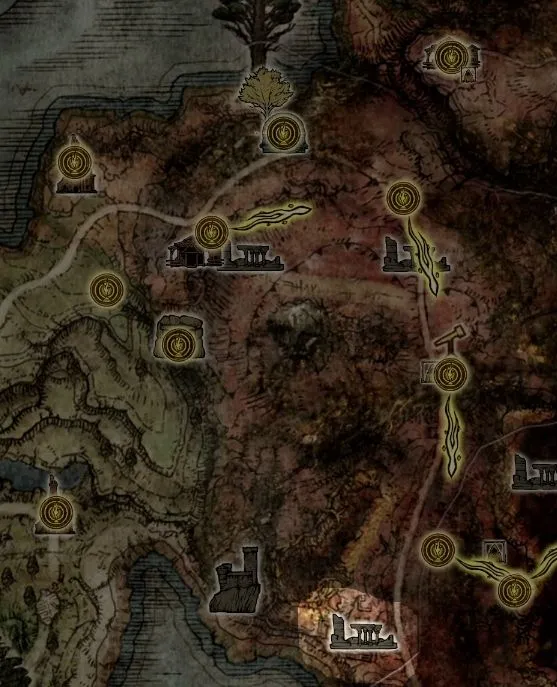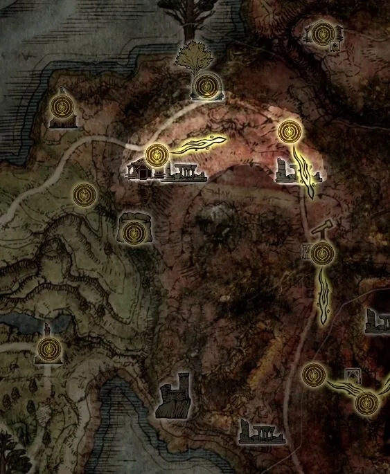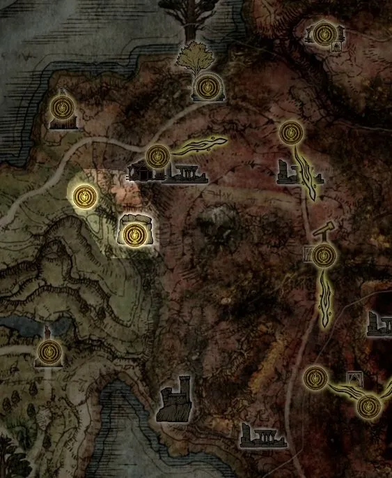 К западу от торговца вы найдете несколько больших каменных мечей, воткнутых в землю. За ними находится следующая точка милосердия под названием Северное шоссе Каэлида. Мало того, если вы вернетесь к торговцу и остановитесь в нескольких метрах перед ним, то заметите справа от себя большой изогнутый корень дерева. Пройдите через него и спуститесь по склону, немного смещенному влево, чтобы попасть в точку милосердия Болотный берег Эонии.
