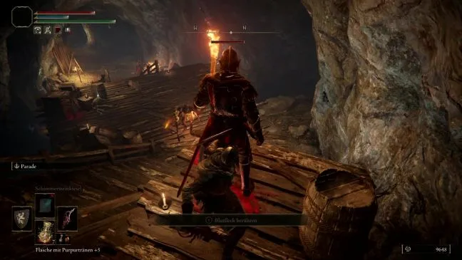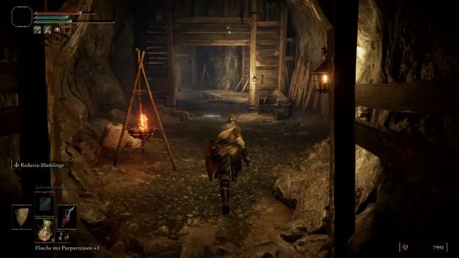 Внизу вас также ждут солдат и рабочий, охраняющие несколько останков Великого Мерцающего Камня и Имитацию Благодати. Затем направляйтесь в коридор, идущий на юг. Идите по нему вслепую, пока не придете к деревянной двери, за которой находится еще одна точка Благодати: Гельтуннель - Запасной вход. Если вы продолжите идти по этому пути, то снова окажетесь на открытом пространстве и сможете телепортироваться по своему усмотрению.