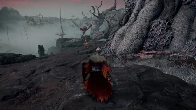 Теперь идите к парадному входу в крепость, который находится на северной стороне рядом с шестом Марики. К сожалению, вход надежно заперт, поэтому придется пойти обходным путем. Для этого сначала пройдите направо к узкой деревянной платформе и с нее осторожно перепрыгните на толстую изогнутую ветку, растущую из крепостной стены под Вами. Она приведет вас к другой деревянной платформе с врагами и лестнице, по которой вы попадете внутрь крепости.