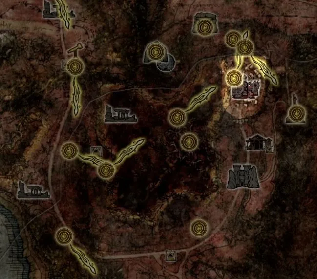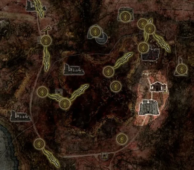 - Следуйте по дороге на северо-запад и ориентируйтесь на желтое светящееся земляное дерево, которое видно издалека. По пути вы встретите несколько мутировавших собак и, наконец, доберетесь до хижины изолированного торговца, расположенной в одноименной точке милосердия. Упомянутый кочевой торговец присядет на корточки перед хижиной и продаст вам Записку: Проход и Записку: Тайная пещера. За хижиной или на западной оконечности плато вы найдете скарабея, а также Пепел войны: Небесный выстрел.