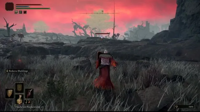 - На северо-востоке находится Священная башня Каэлида, которая приглашает вас к авантюрному восхождению и которую стоит посещать только в позднее время из-за обитающих там врагов. По пути к башне вы также наткнетесь на небольшой изогнутый корень, на котором сидит черный скарабей. Будьте осторожны: Он взорвется, когда вы его убьете! Взамен вы получите очень ценный камень Даркфорджа [8].