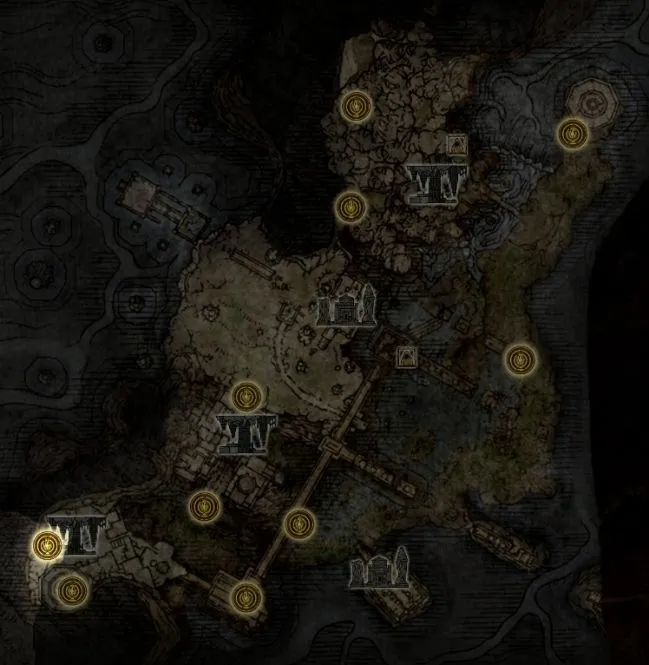 Сначала пройдите через дверь на юго-восточной стороне, за которой находятся три белых существа. Затем спуститесь по лестнице на юго-запад и пройдите в другую башню, где можно убить скарабея и где находится заклинание Heal Order. Также пройдите через любую арку и посмотрите на выступ башни, где вы найдете Золотую руну [7]. Золотую руну [13] можно также найти, осмотрев разбитый кусок платформы на северо-западе.