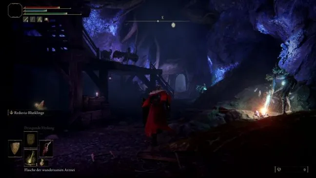 2) Вы можете отправиться на восток к скальной стене с лестницей, которая приведет вас к круговой дорожке с многочисленными могилами. Там, конечно же, из-под земли выползает всевозможная нежить, а по пути Вы обнаружите несколько золотых рун. У северной стены можно найти чашу с Кристаллической слезой из улиток, а в западном направлении вас ждет хижина отшельника с одноименной точкой благодати. Торговец-отшельник продаст вам, помимо прочего, Благородный Большой Щит и записку: Под Столицей.