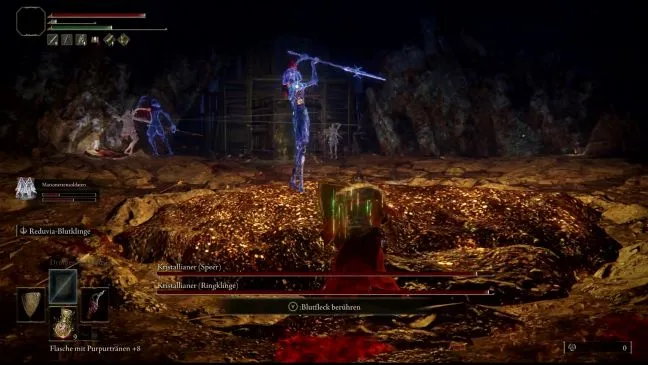 Вы, вероятно, уже знакомы с Кристаллианами, и этот дуэт не станет для вас большим сюрпризом. Как обычно, призовите пепельное существо, чтобы отвлечь одного из кристаллов, а сами займитесь другим. И снова важно не потерять терпение: Поначалу вы не наносите почти никакого урона с каждого удара, пока не пробьете толстую кристаллическую кожу противника. Только тогда он становится по-настоящему уязвим и через несколько секунд должен лежать мертвым на земле.