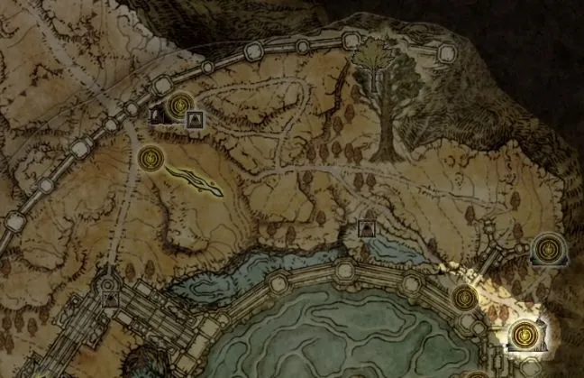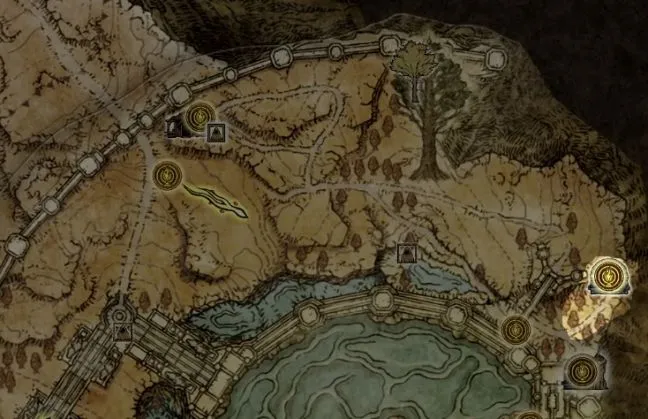 Пробегите мимо тонких, засохших деревьев и направляйтесь к метро на востоке, под которым Вы также увидите несколько висящих трупов. Перед метро находится монолит с указанной картой: Gelmir, но будьте осторожны: как только вы приблизитесь к нему, справа на вас полезет атакующая рука!