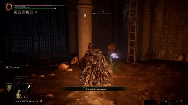Следите за землей и держитесь подальше от оранжевых паров, которые через несколько секунд взорвутся. Через некоторое время Вы увидите золотое дерево с золотым семенем на левом краю. Далее Вы найдете одинокий камень кузнеца [5], который лежит перед другой длинной скалой. После этого нужно пройти по диагонали направо вверх по склону и столкнуться с несколькими лягушками-паразитами, чтобы добраться до омолаживающего болли, кости тяжелого зверя, осколка стекла и бабочки-подростка.