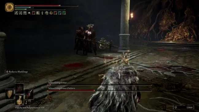 Конечно, мы настоятельно рекомендуем использовать ясеневую тварь, хотя ухаживать за ней придется самостоятельно. Она также не сможет долго выдерживать атаки обоих рыцарей, поэтому необходимо время от времени привлекать ее внимание к себе. В то же время всегда следует использовать возможность ударить рыцаря сзади, пока он набрасывается на ваше пепельное существо. Особенно если это Ордовис - ведь благодаря его щиту ударить его спереди можно гораздо реже, чем рыцаря без щита.