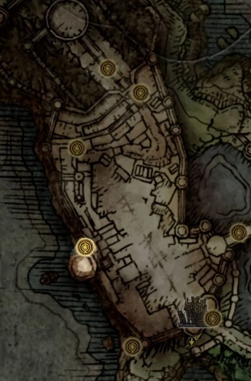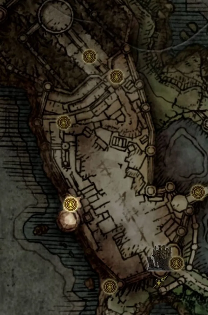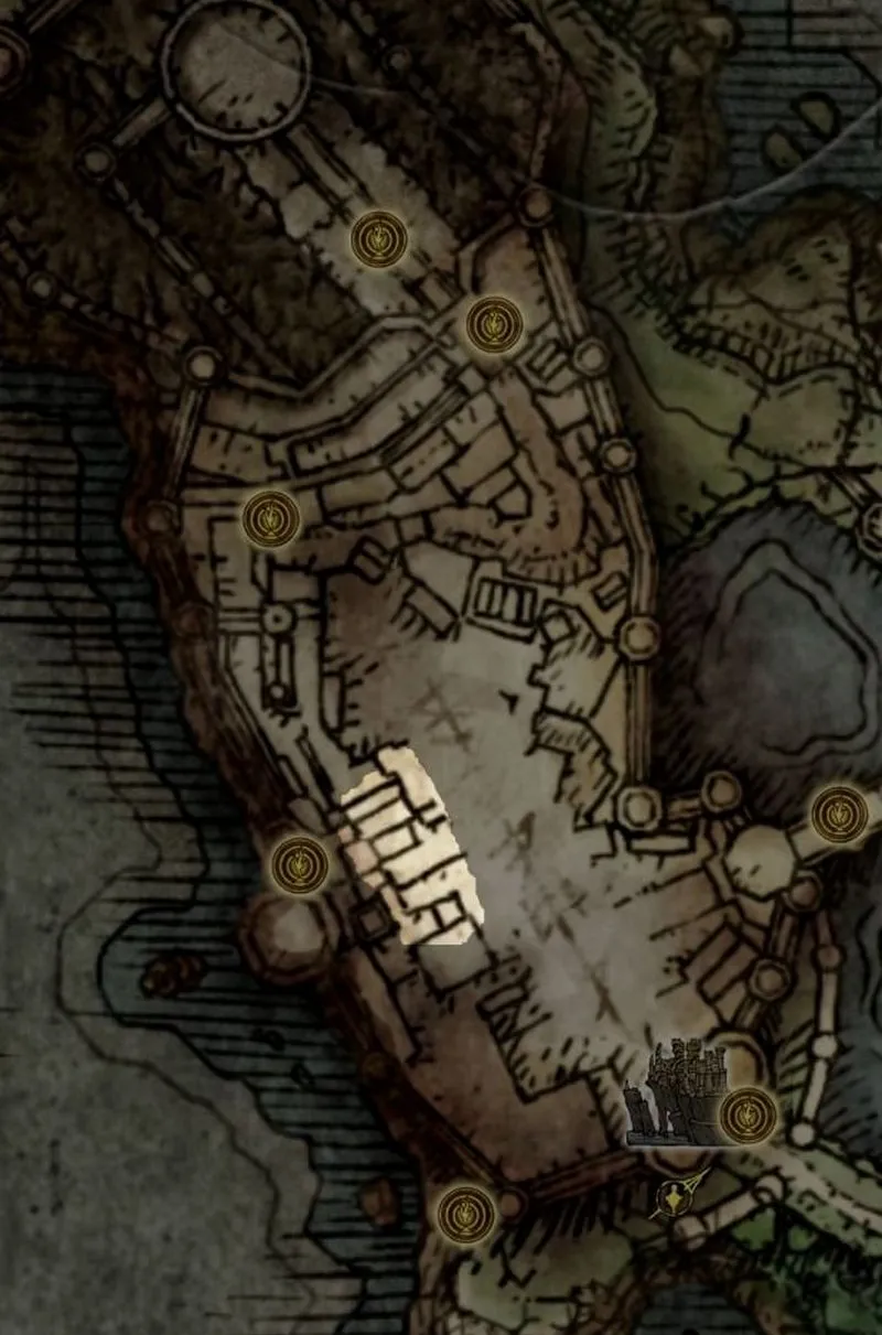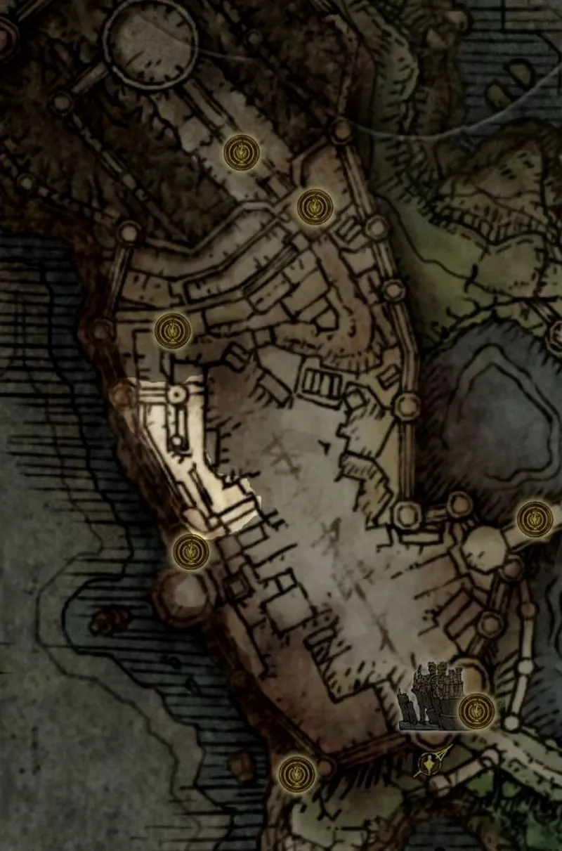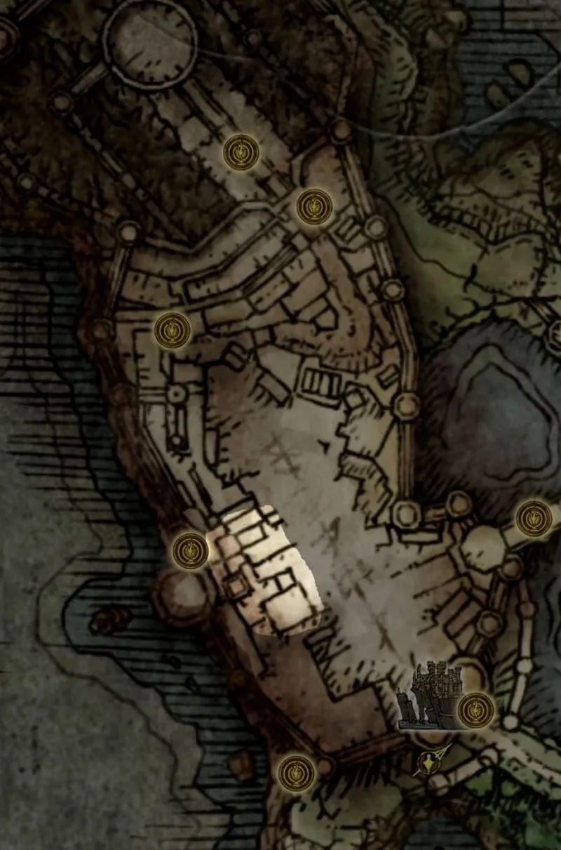 После боя сначала идите на север, пока не дойдете до небольшой прихожей. Сразу же пересеките его и убейте двух спящих врагов в углу. После этого вы можете вернуться в здание слева и войти в часовню замка прямо. Волшебник Рогир, с которым вы, возможно, сражались с Маргит, живет там и теперь предлагает вам на продажу некоторые таланты военного пепла.