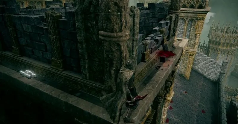 Затем пройдите по деревянной платформе в северо-восточном углу и просто идите по карнизу, пока не окажетесь на широкой крыше с небольшим сломанным шпилем. Вы можете подняться по вершине и перепрыгнуть на выступ справа от вас. Осторожно пересеките его, пока не сможете спрыгнуть на плоскую платформу. Сначала вам нужно справиться с четырьмя врагами, а затем подняться на башню по лестнице в центре. На вершине возьмите талисман «Коготь».