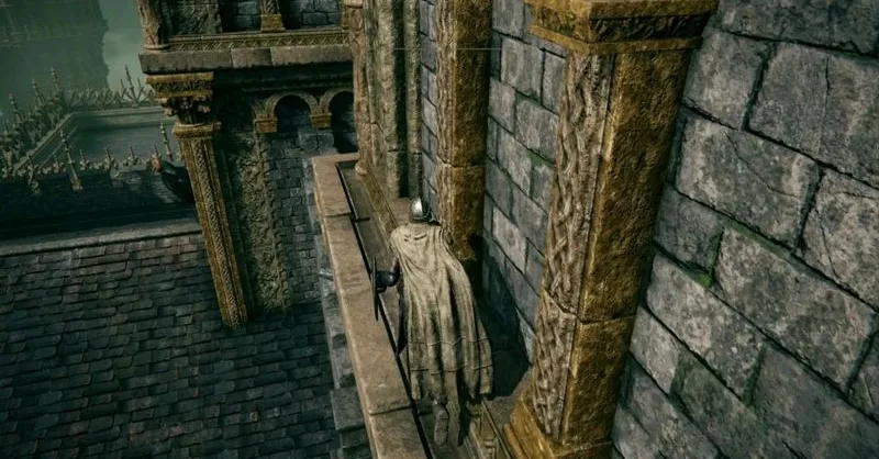 Вернитесь к лестнице, спуститесь по ней и направьтесь к узкой крыше. Она приведет вас внутрь башни, где нужно следить за цилиндрическим отверстием в полу. Вы также можете снова выйти направо и пройти по другой крыше. Там нацельтесь на деревянную платформу в задней части слева, к которой прикреплена лестница, по которой можно спуститься на узкую мощеную дорожку.