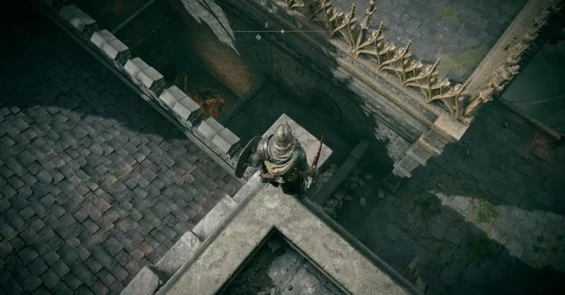 Идите к точке сохранения Валтурма и снова покиньте комнату через дверь на северо-западной стороне. Разберитесь с орлами-грифонами, а затем поднимитесь по небольшой лестнице на юго-западной стороне, где прятался самый дальний из трех орлов. Встаньте на край платформы и посмотрите вниз: Вы увидите узкую тропинку, по которой можно спуститься вниз.