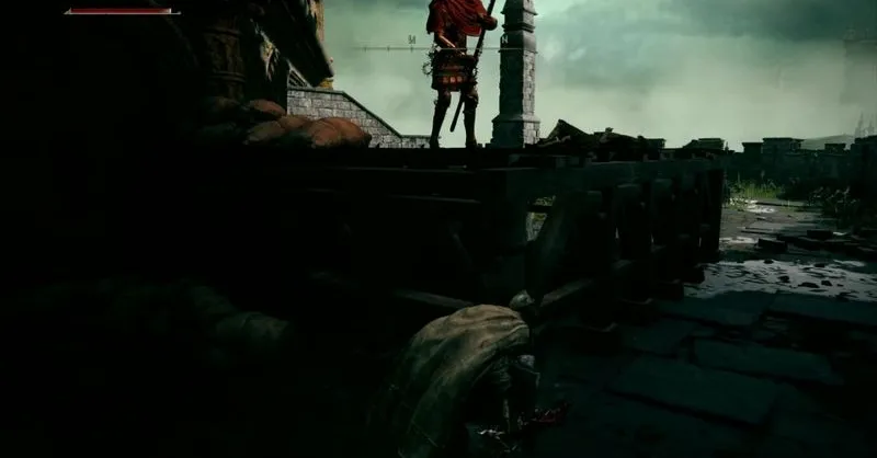 Если вы следовали нашему руководству, вы должны были добраться до вершины стены башни и уничтожить множество врагов возле деревянной платформы снаружи. Встаньте на платформу и найдите кучу мешков с песком, лежащую в северо-восточном углу. Вы можете перелезть через них на перила, а затем пойти по трем совершенно разным путям.