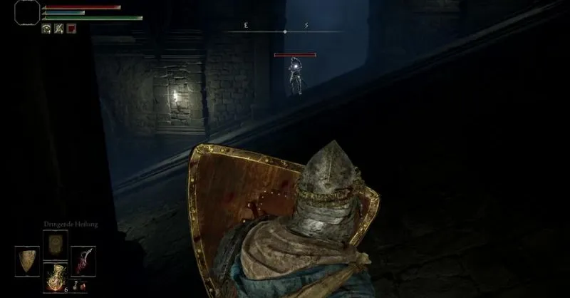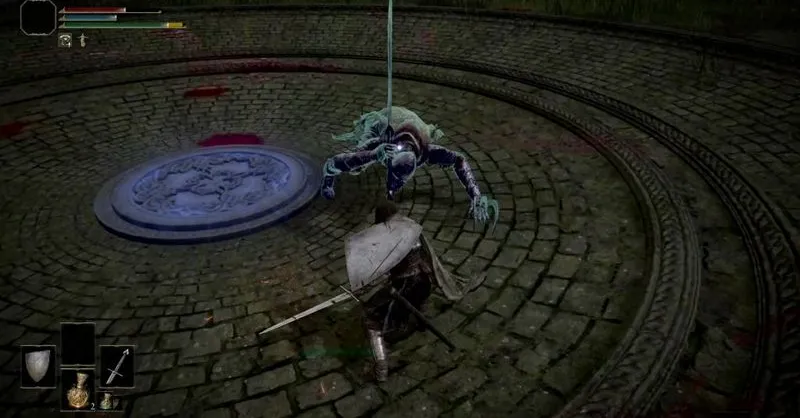 Когда вы войдете в тюрьму, вам придется сразиться с рыцарем-кровопийцей Дарривилом. Это довольно ловкий противник, использующий в качестве оружия удлиненную, кривую саблю.